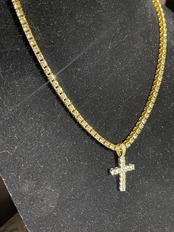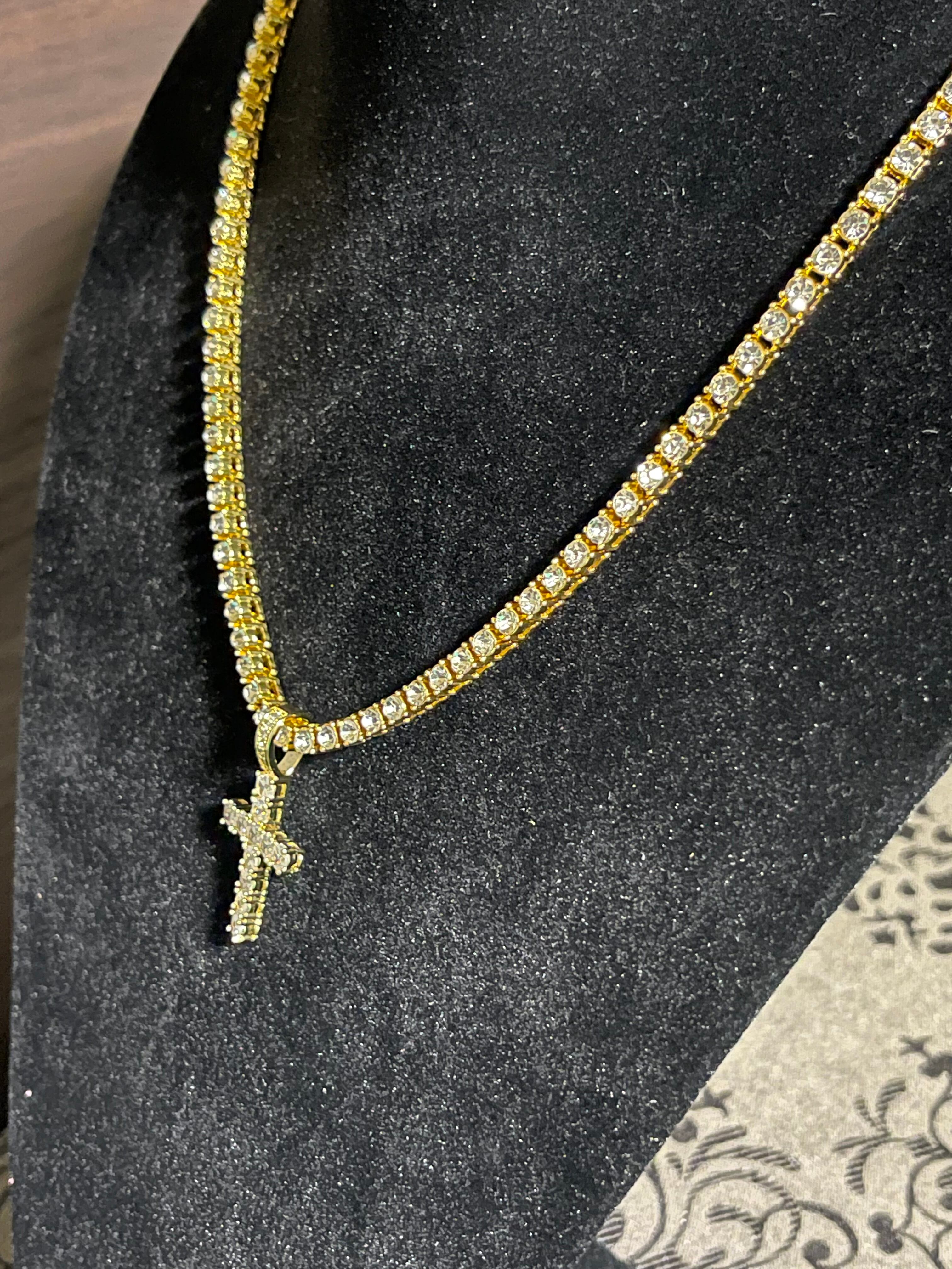 ゴールド クロステニスチェーン ネックレス iced out 十字架 グリッター ブリンブリン ジルコニア ストリート系 ユニセックス Y2K ヒップホップ ラッパー UK DRIP OUTFIT
