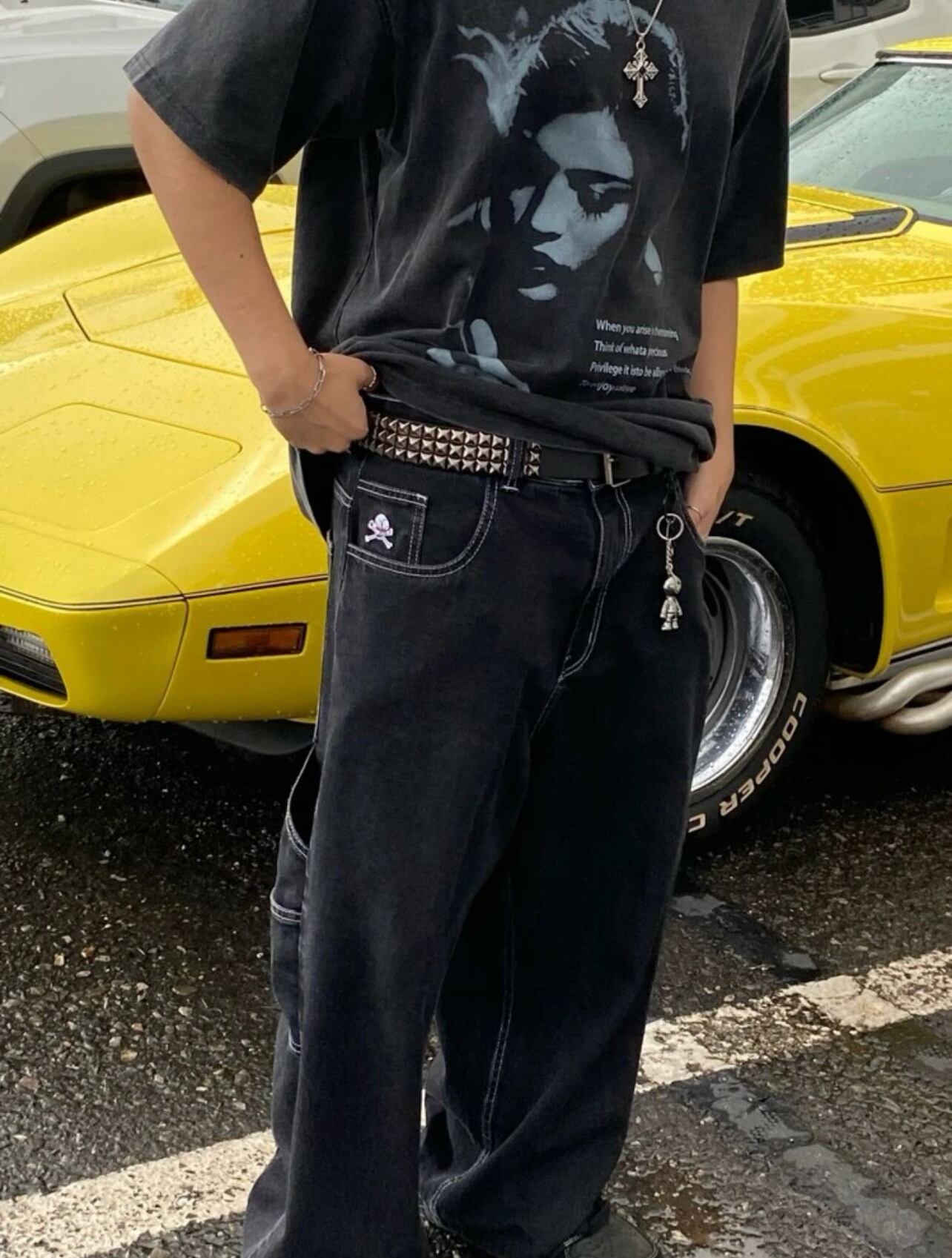 黒 ガンメタ ブリンブリン スタッズベルト y2k sk8 スケーター ストリート系ファッション supreme