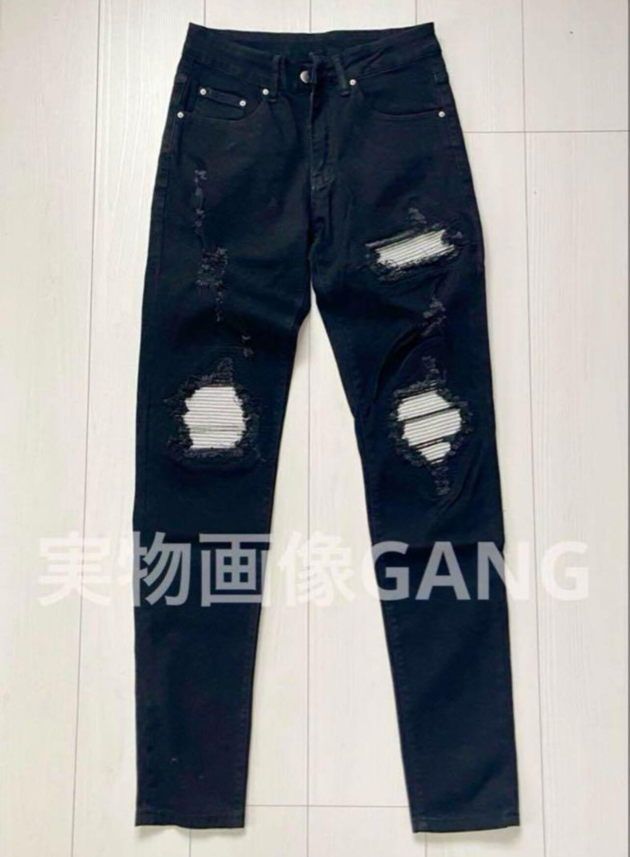 UK US drip スタイル ダメージデニム クラッシュ パンツ ブラック ストリート系 ドリルミュージック y2k B系 ダンサー ヒップホップ ラッパー
