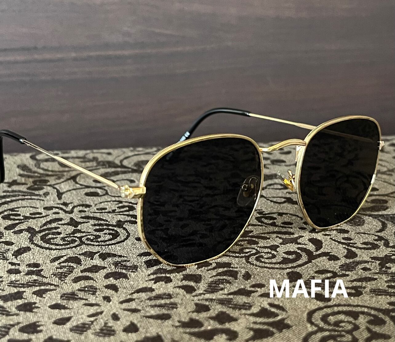 ゴールドフレーム×ブラックレンズが映える、KING-69オリジナルのスタイリッシュサングラス。