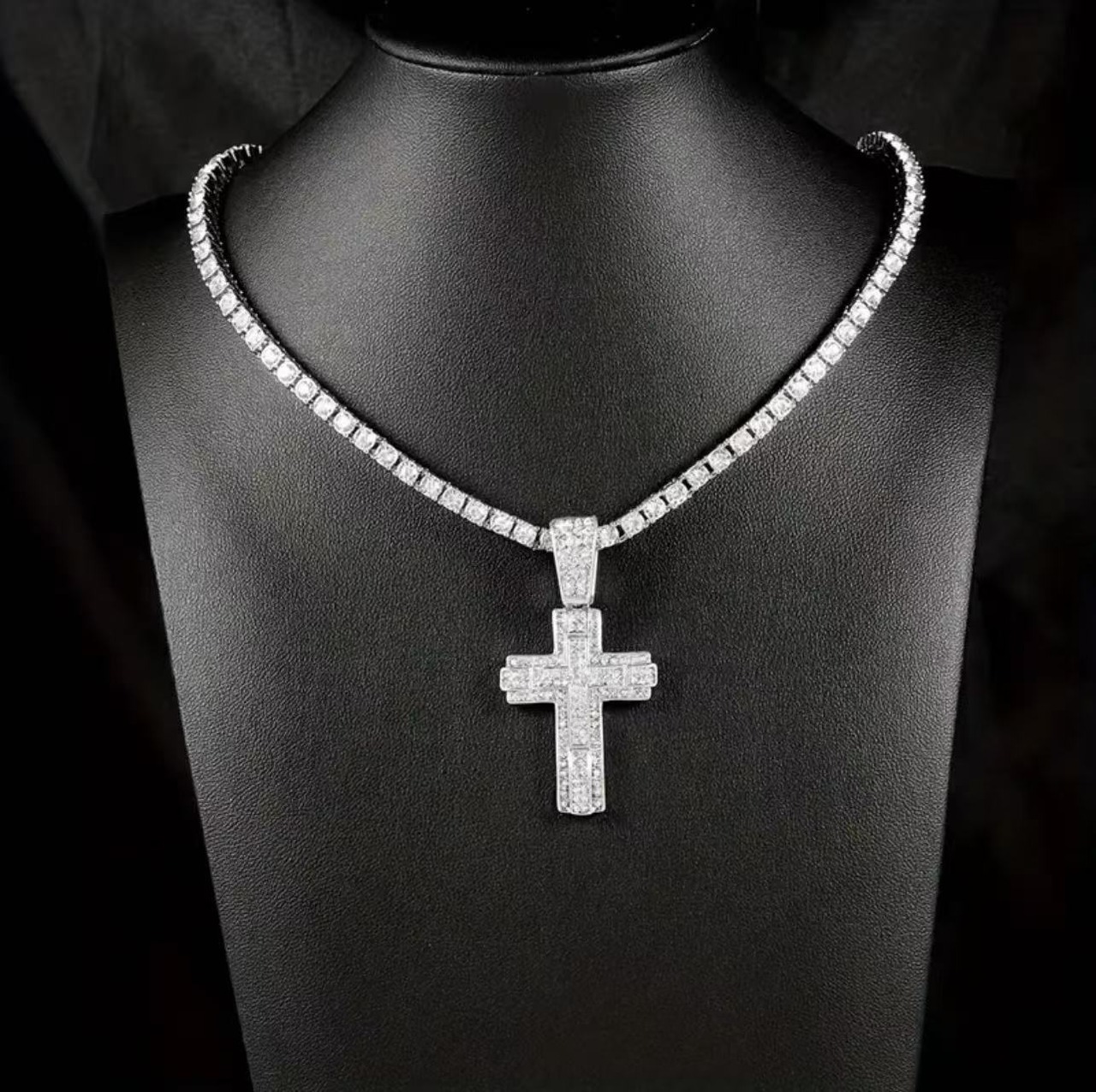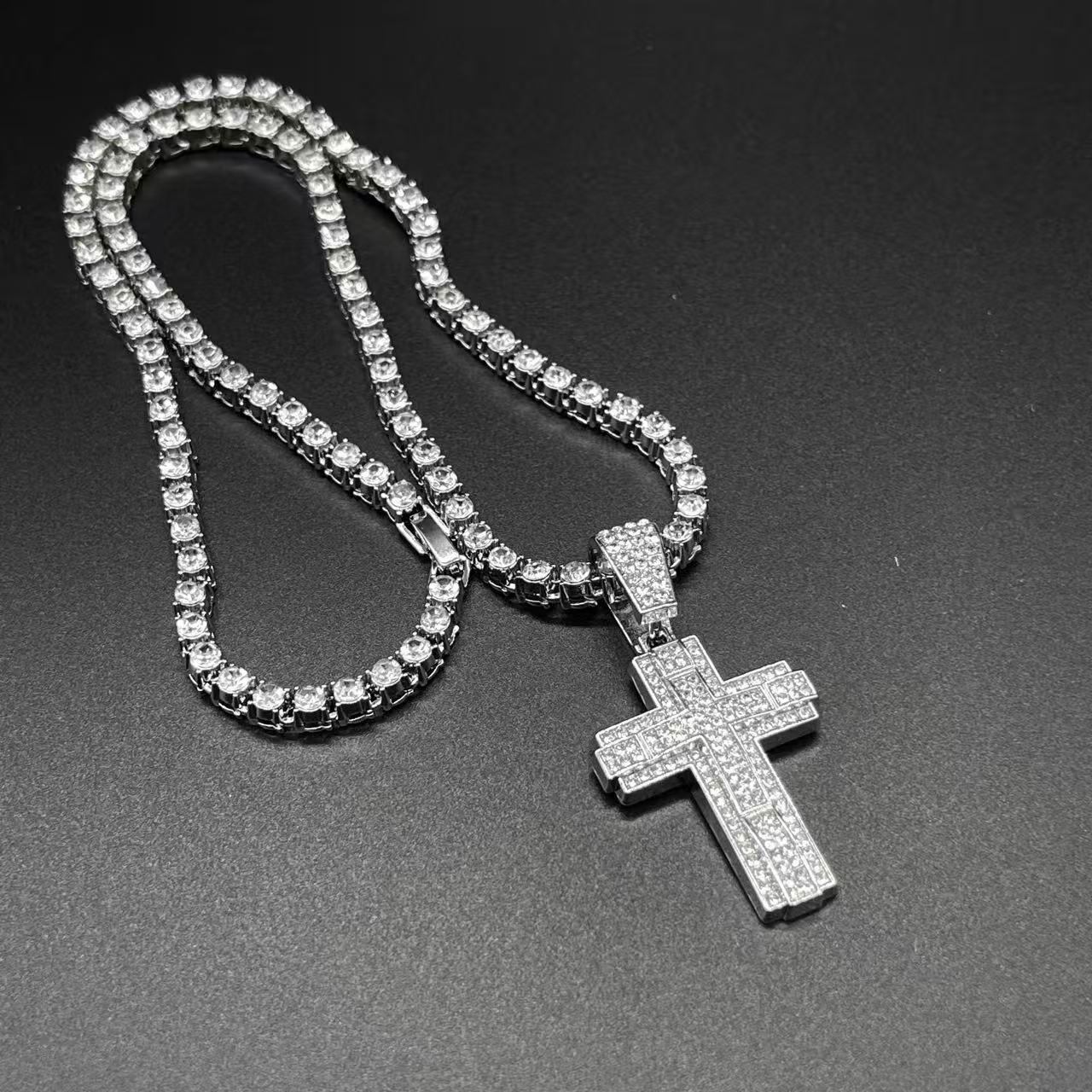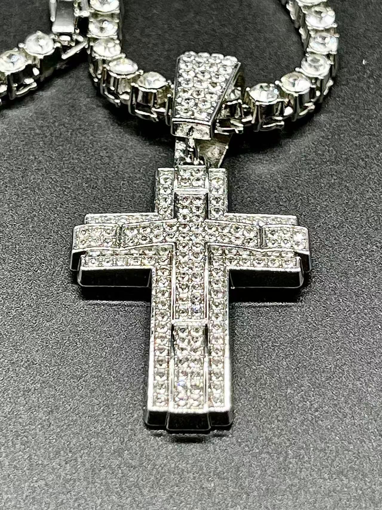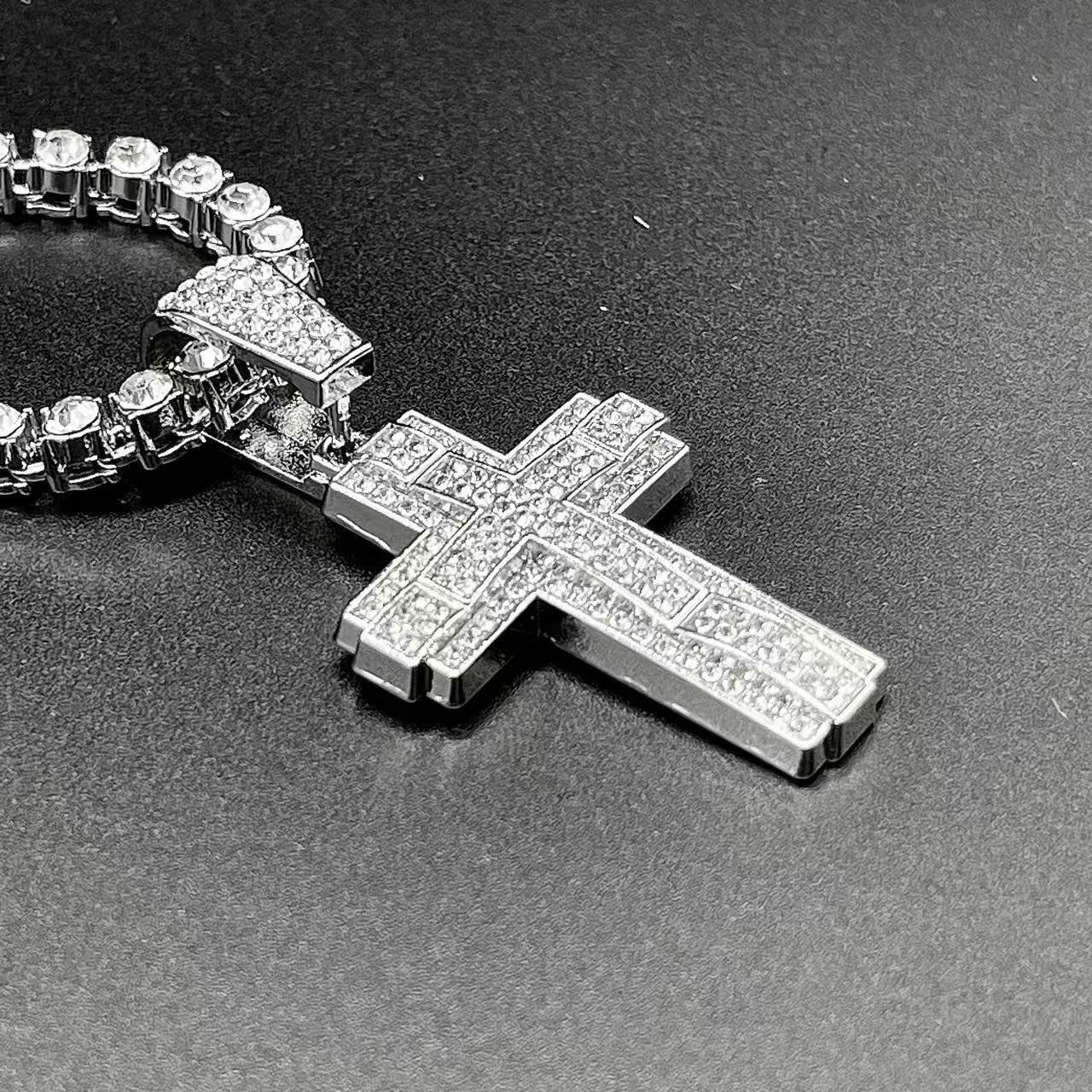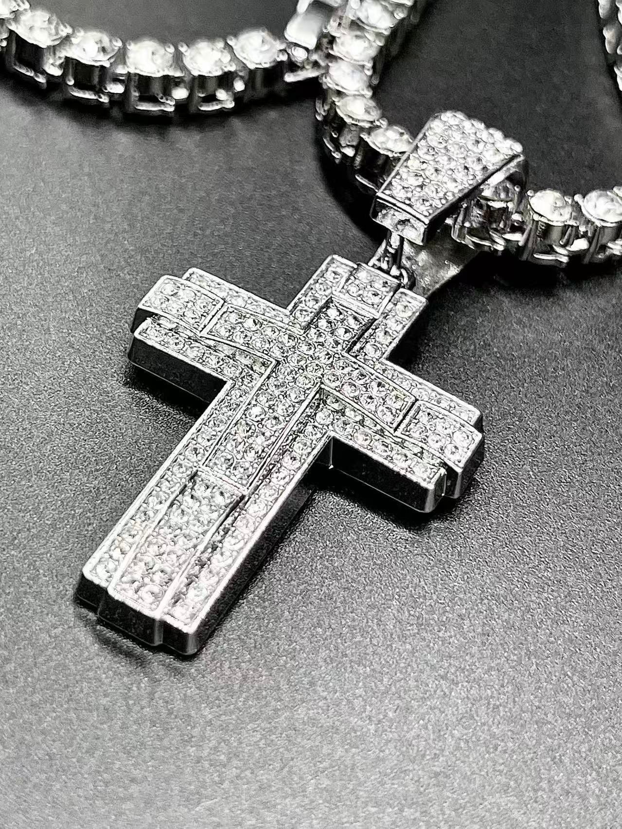 クロスチャーム シルバー テニスネックレス ヒップホップ系ストリートファッション ジュエリー y2k マイアミキューバンネックレス ブリンブリン