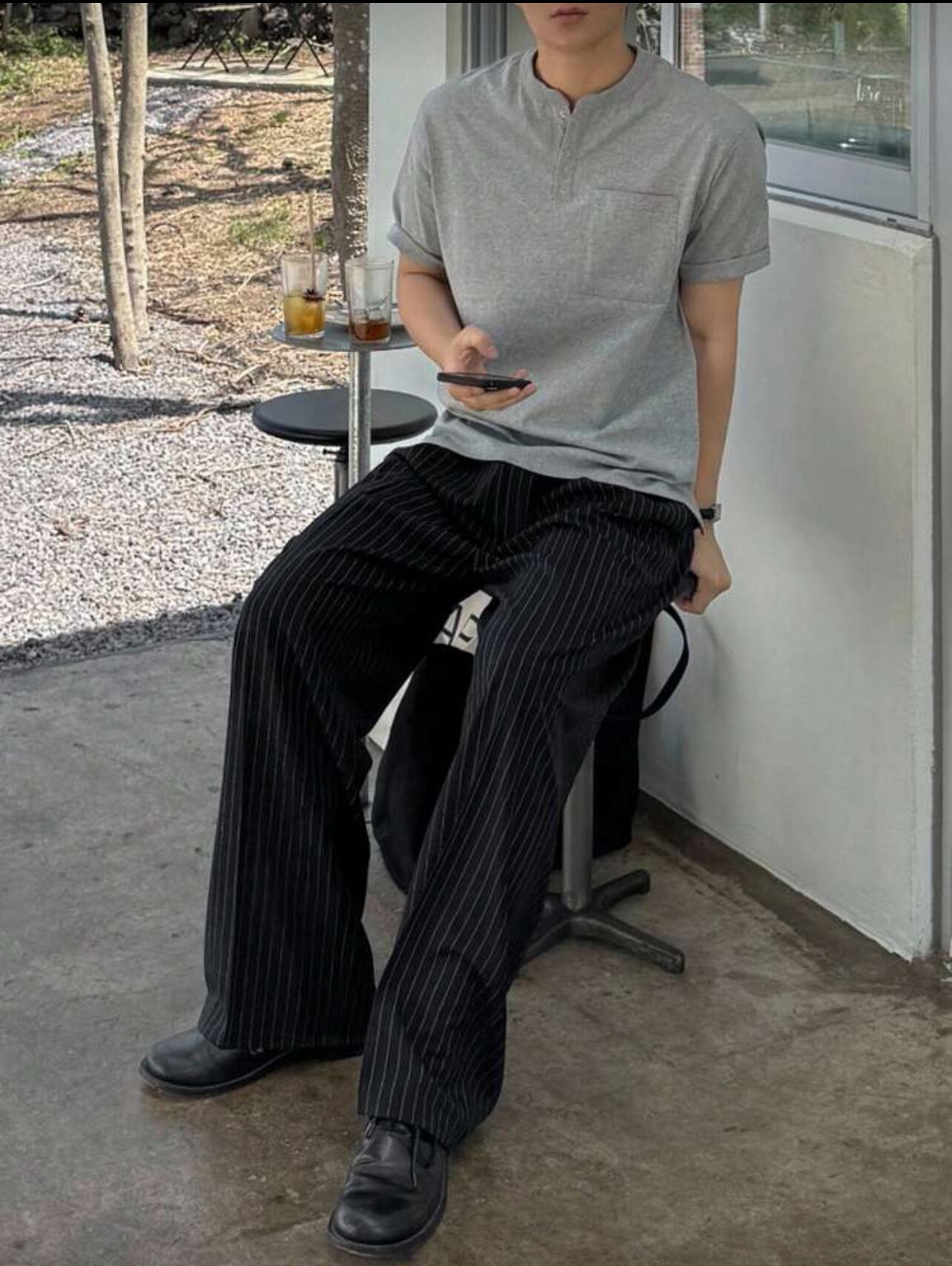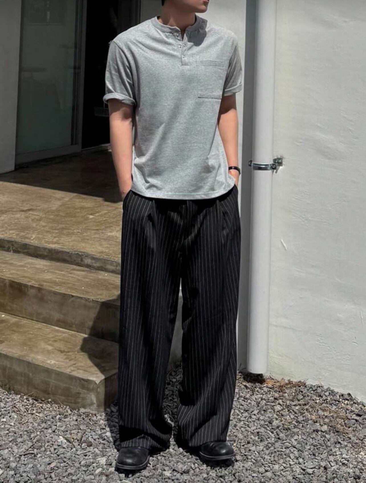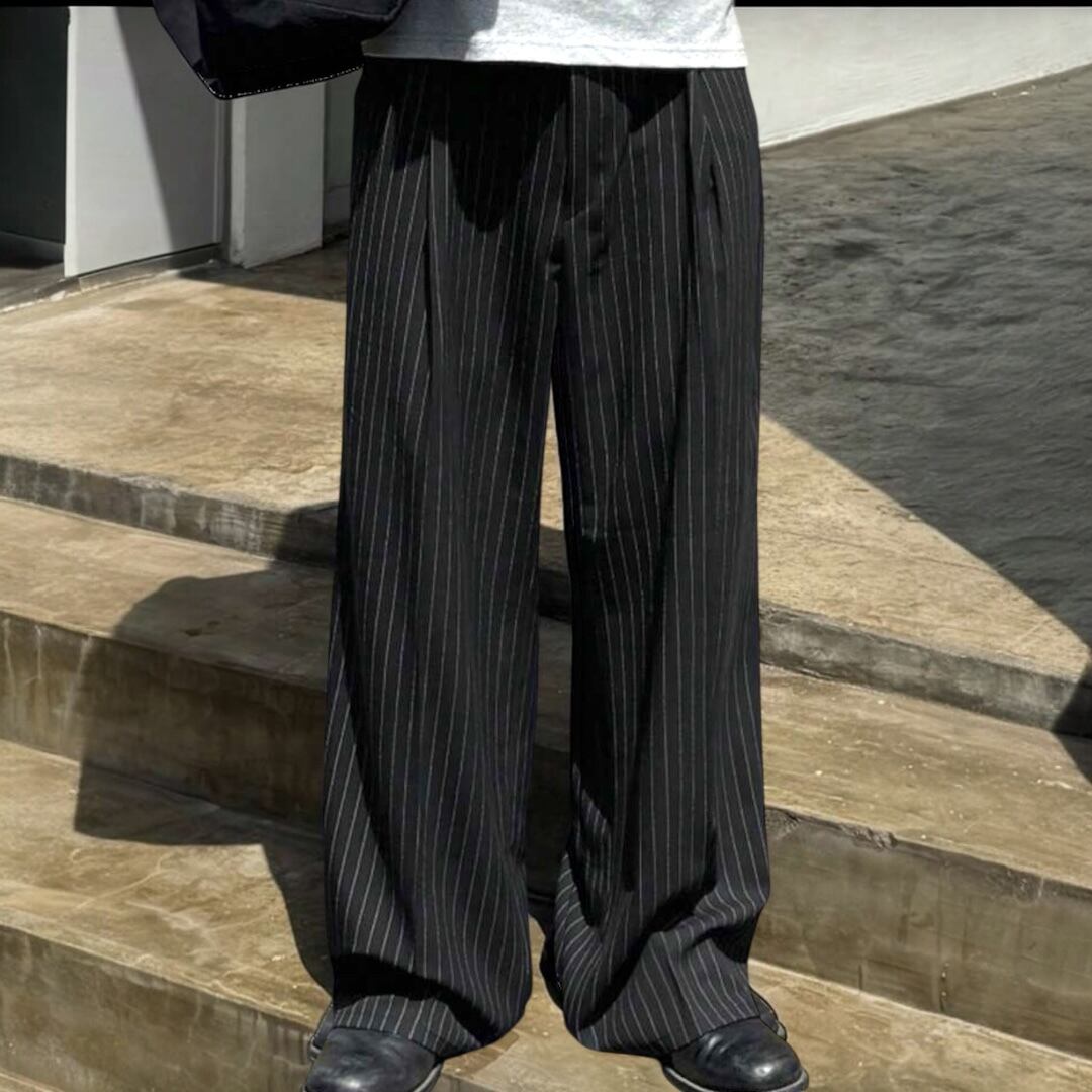 ストライプ イージーワイドパンツ ブラック スラックス ノームコア トレンド ユニセックス おしゃれ カジュアルファッション