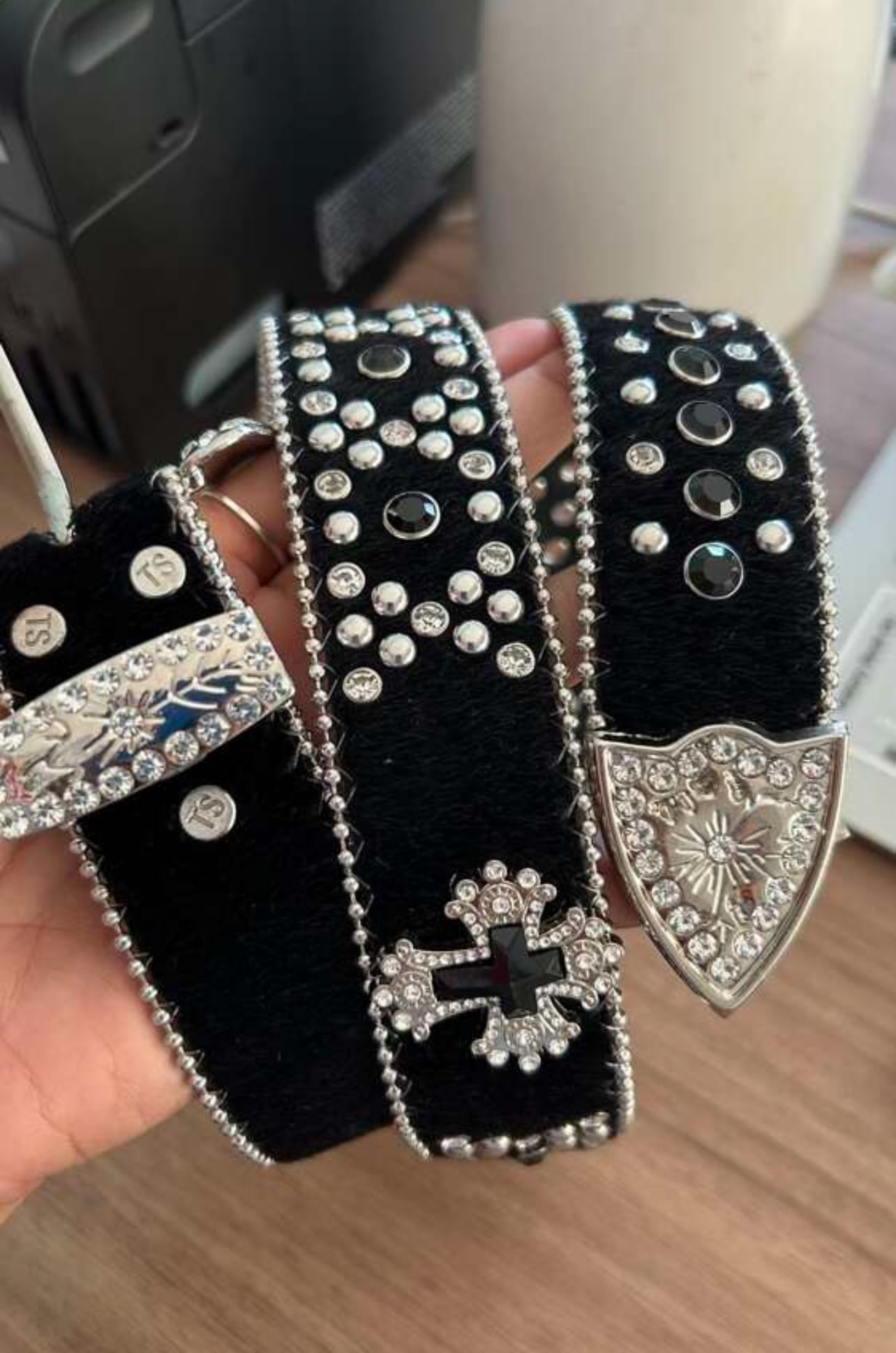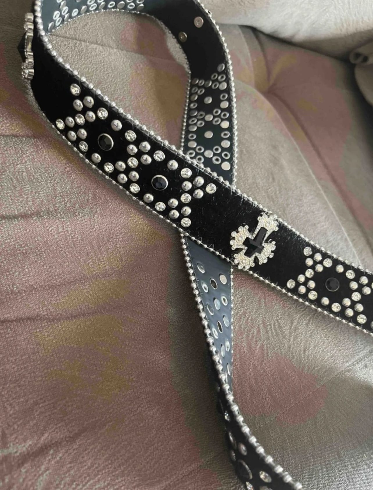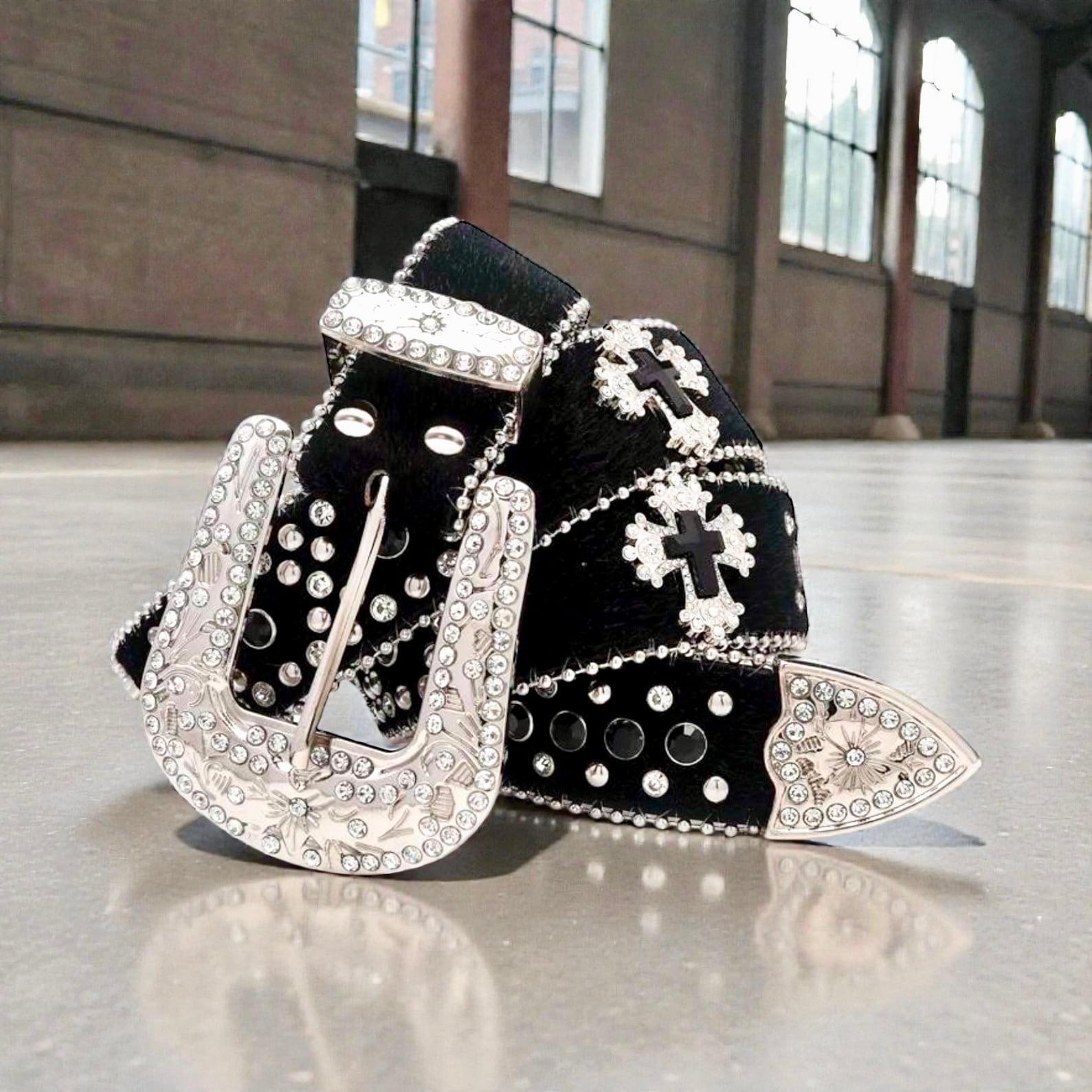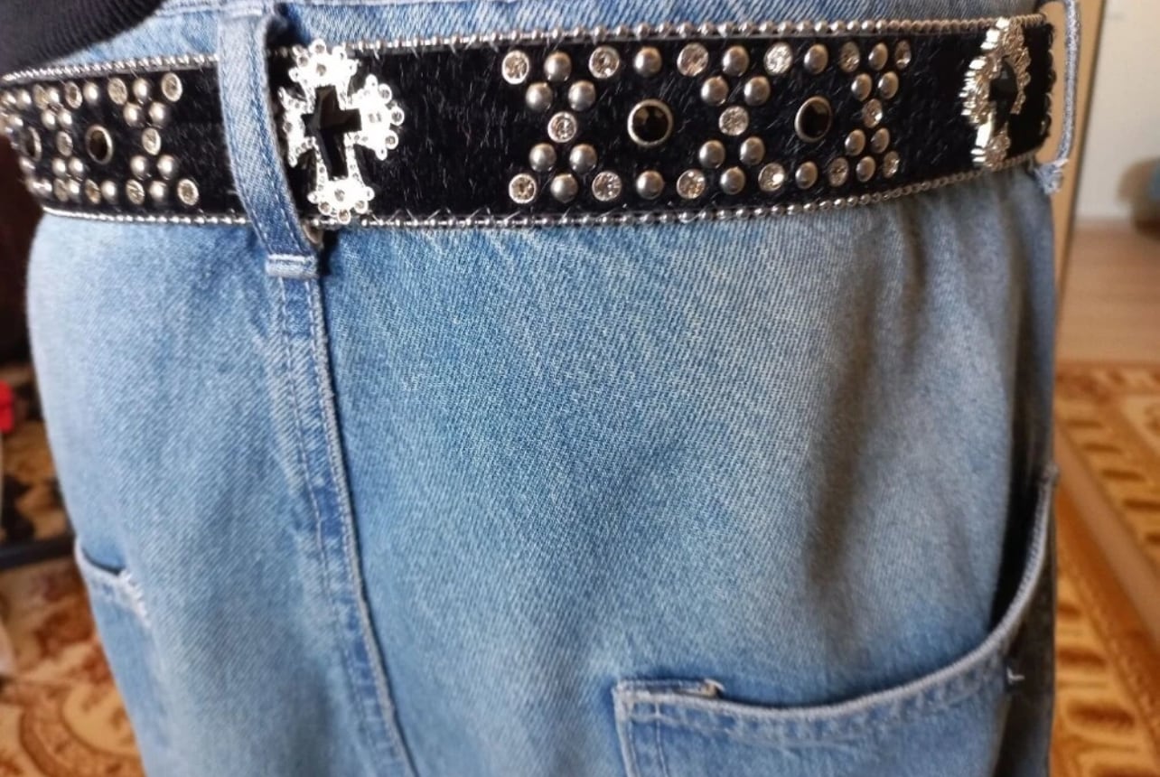 UK ドリル ブラックベルト 十字架 クロス 海外ストリートファッション y2k y3k キラキラ