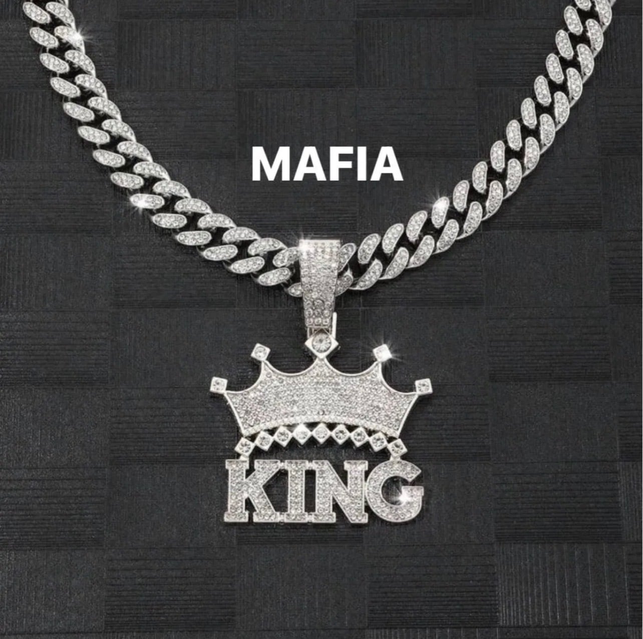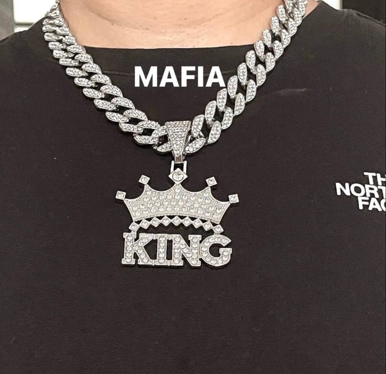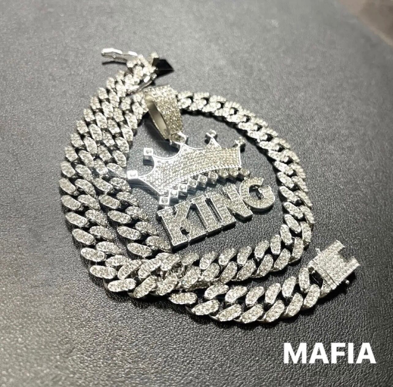 シルバーネックレス KING クラウン 王冠 CZダイヤモンド マイアミキューバンチェーン ブリンブリン グリッター ジルコニア ヒップホップ ラッパー