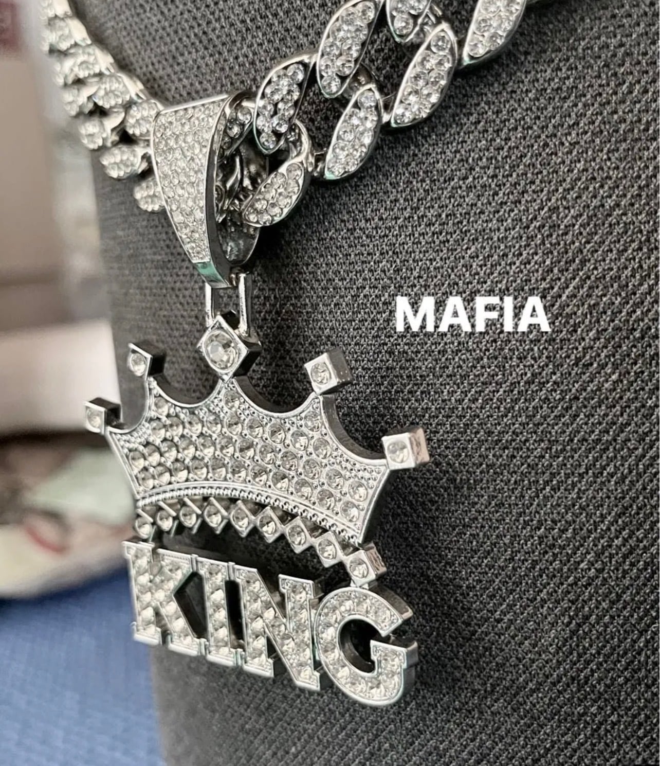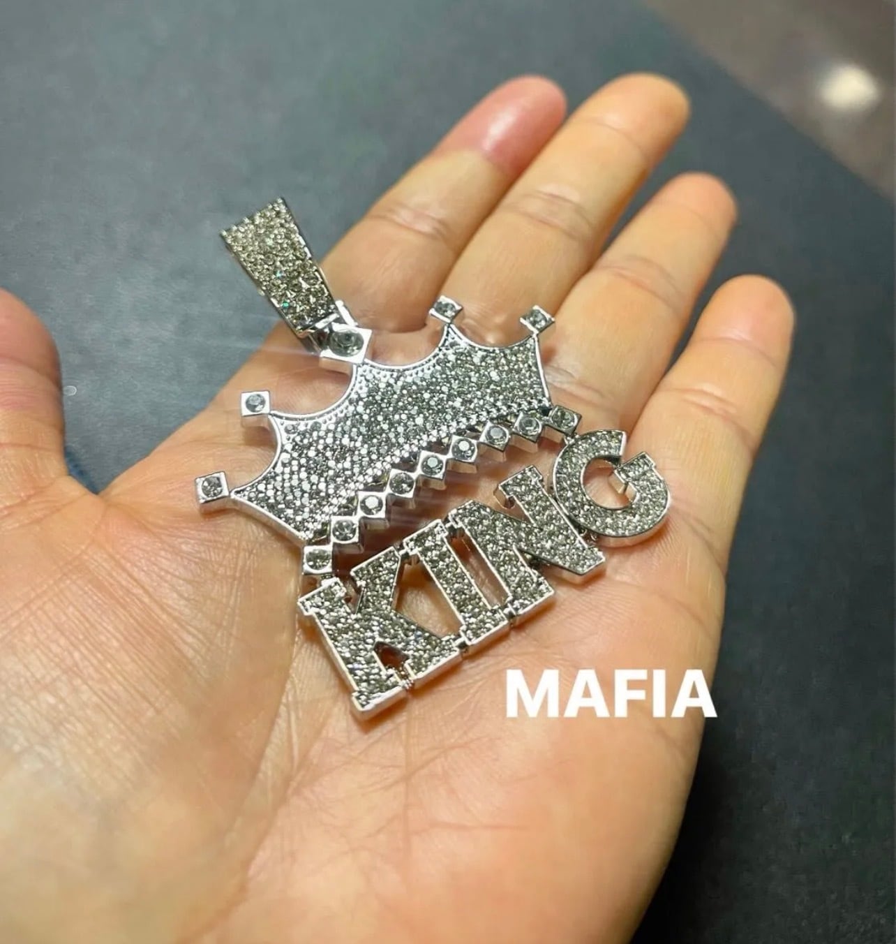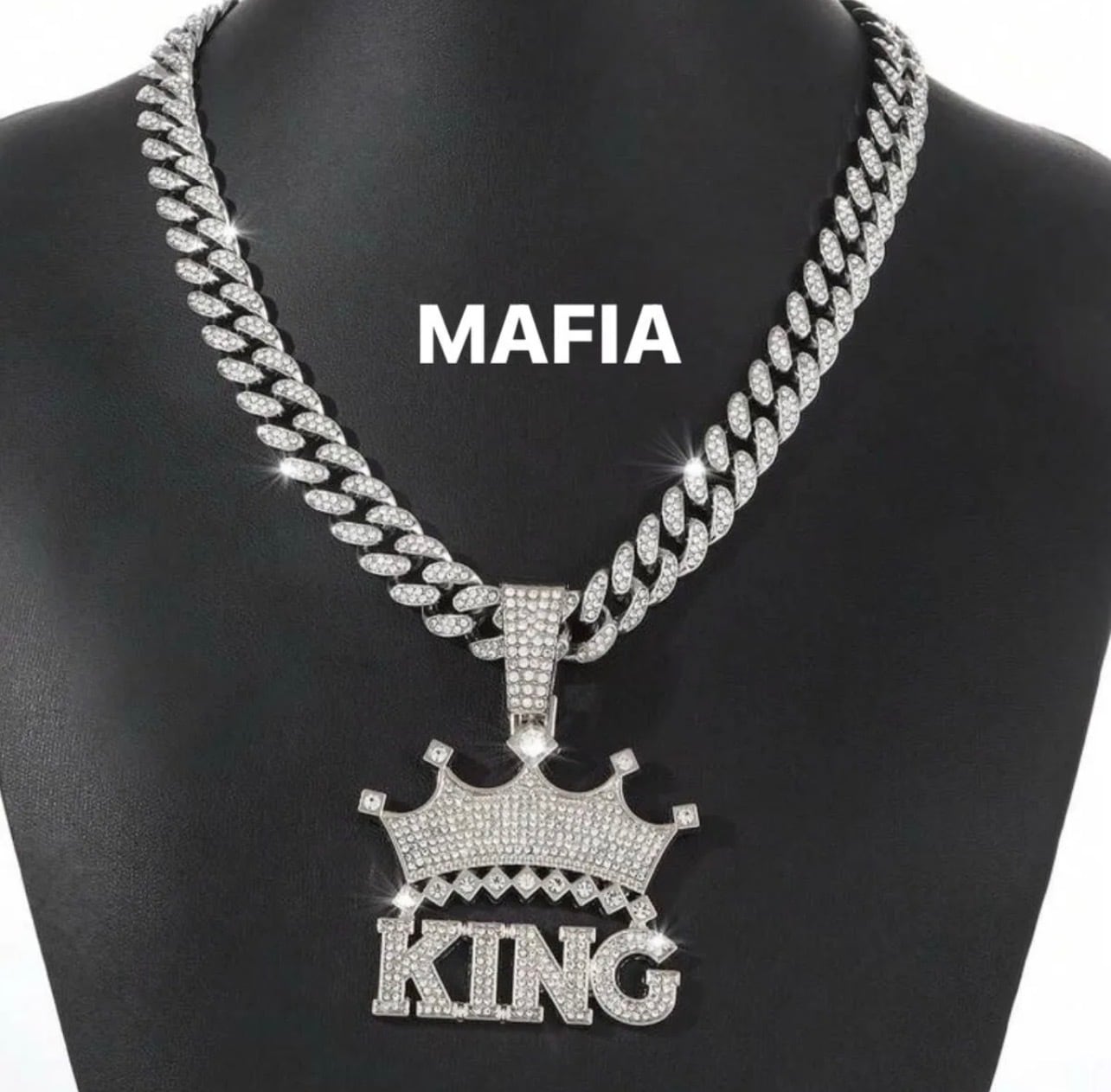 シルバーネックレス KING クラウン 王冠 CZダイヤモンド マイアミキューバンチェーン ブリンブリン グリッター ジルコニア ヒップホップ ラッパー