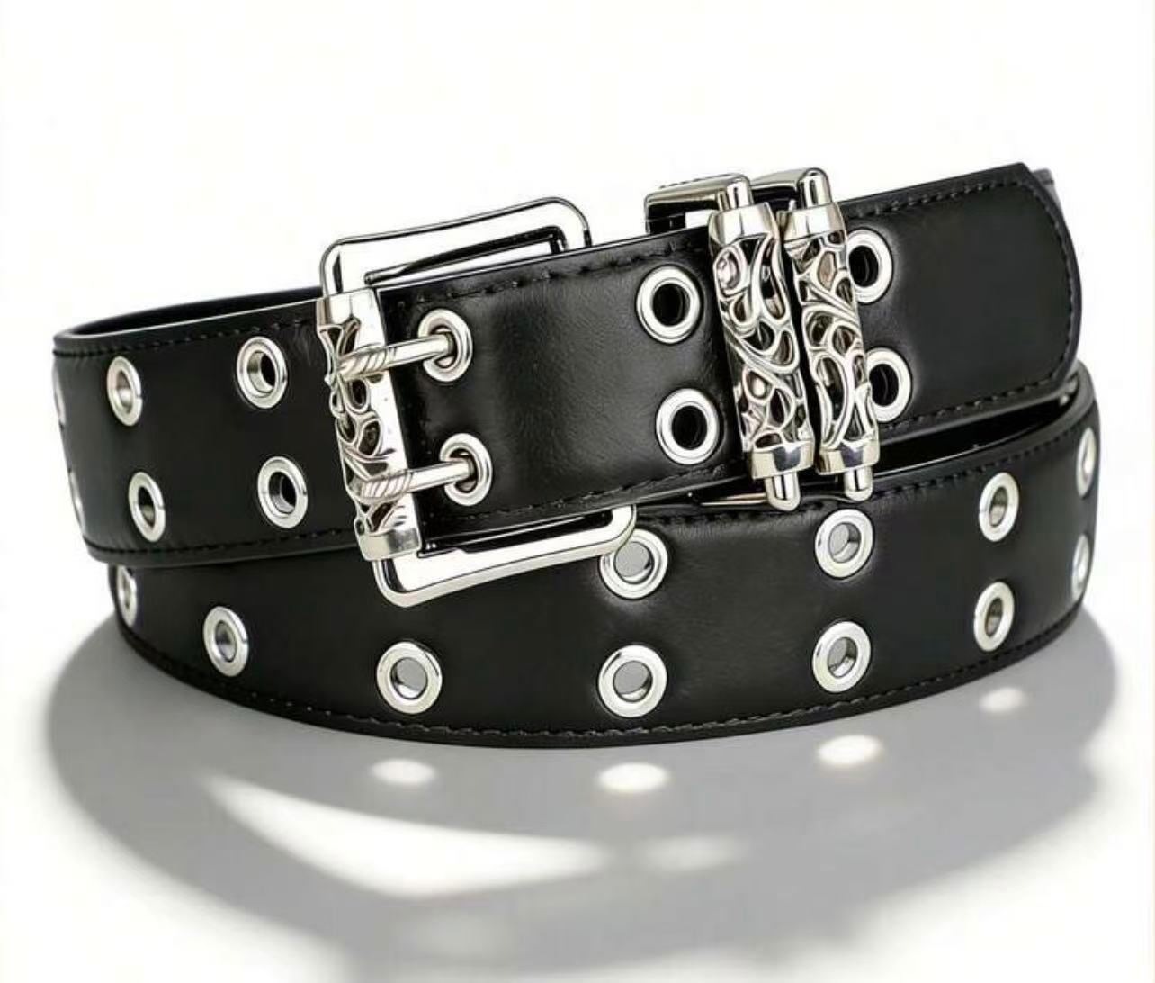 シルバー装飾を施したラグジュアリーなグロメットベルト。