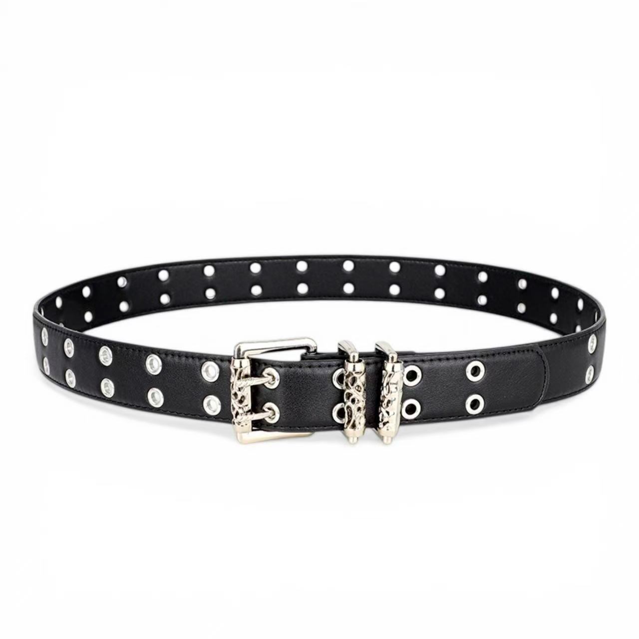 [3TRAPX] ダブルピン グロメットベルト シルバー パンク ロック Y2K V系 モード系 地雷系 ストリート系 オピウムファッション