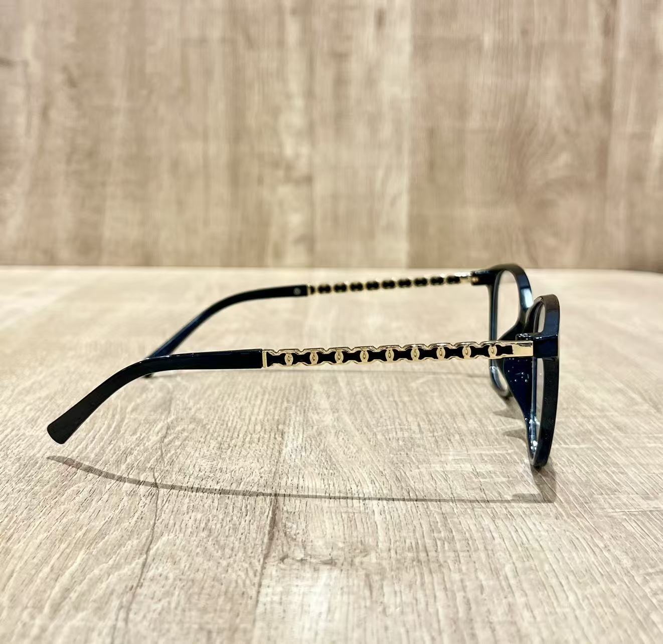 ハイブランドを彷彿とさせるゴールドのチェーンモチーフをテンプルにあしらった
