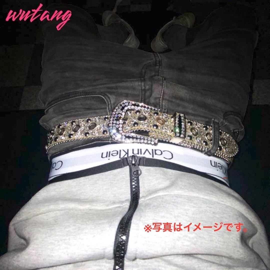 ラインストーンスキニーベルト 海外 ラッパー Y2K UK drill シルバー ストリート ギャング パンツ デニム クラッシュデニム ダメージパンツ