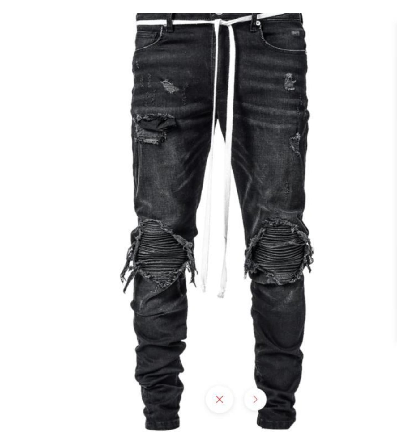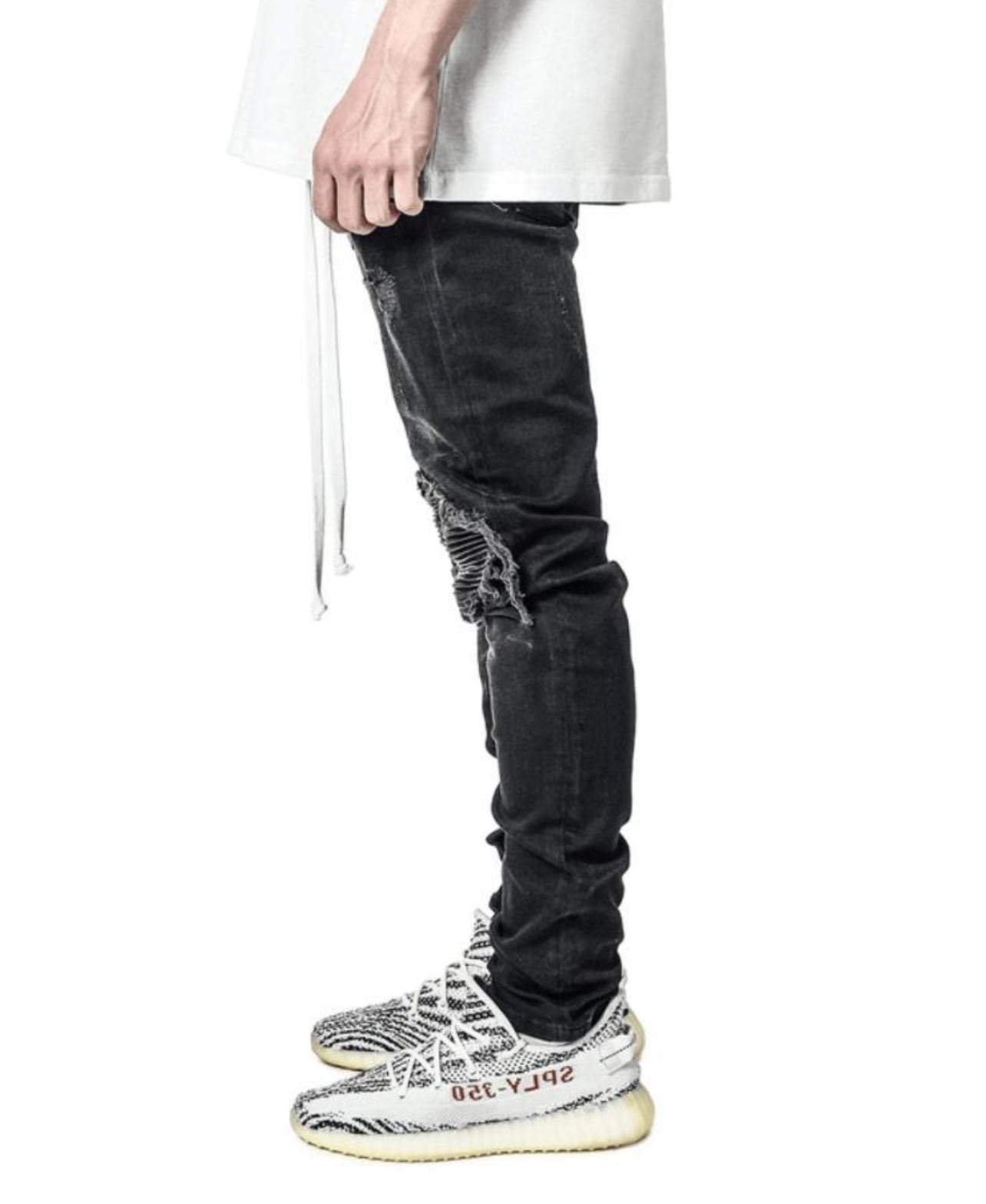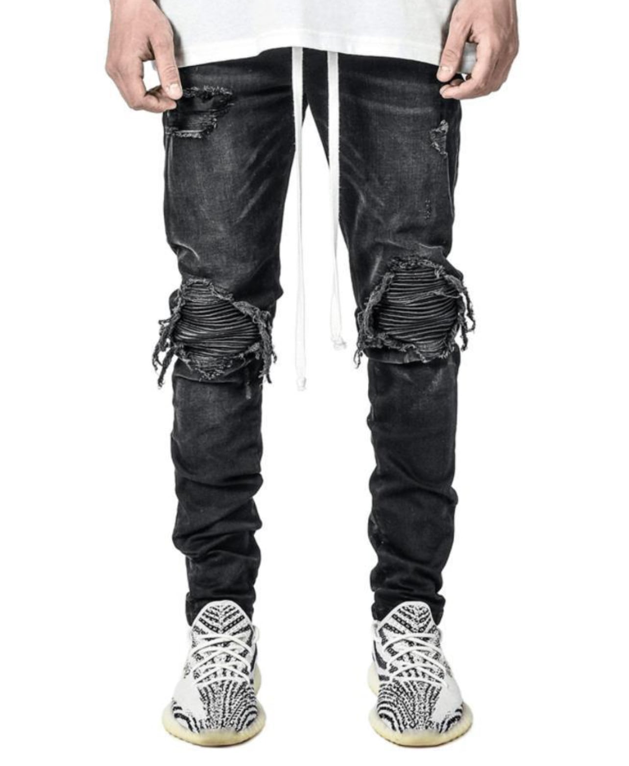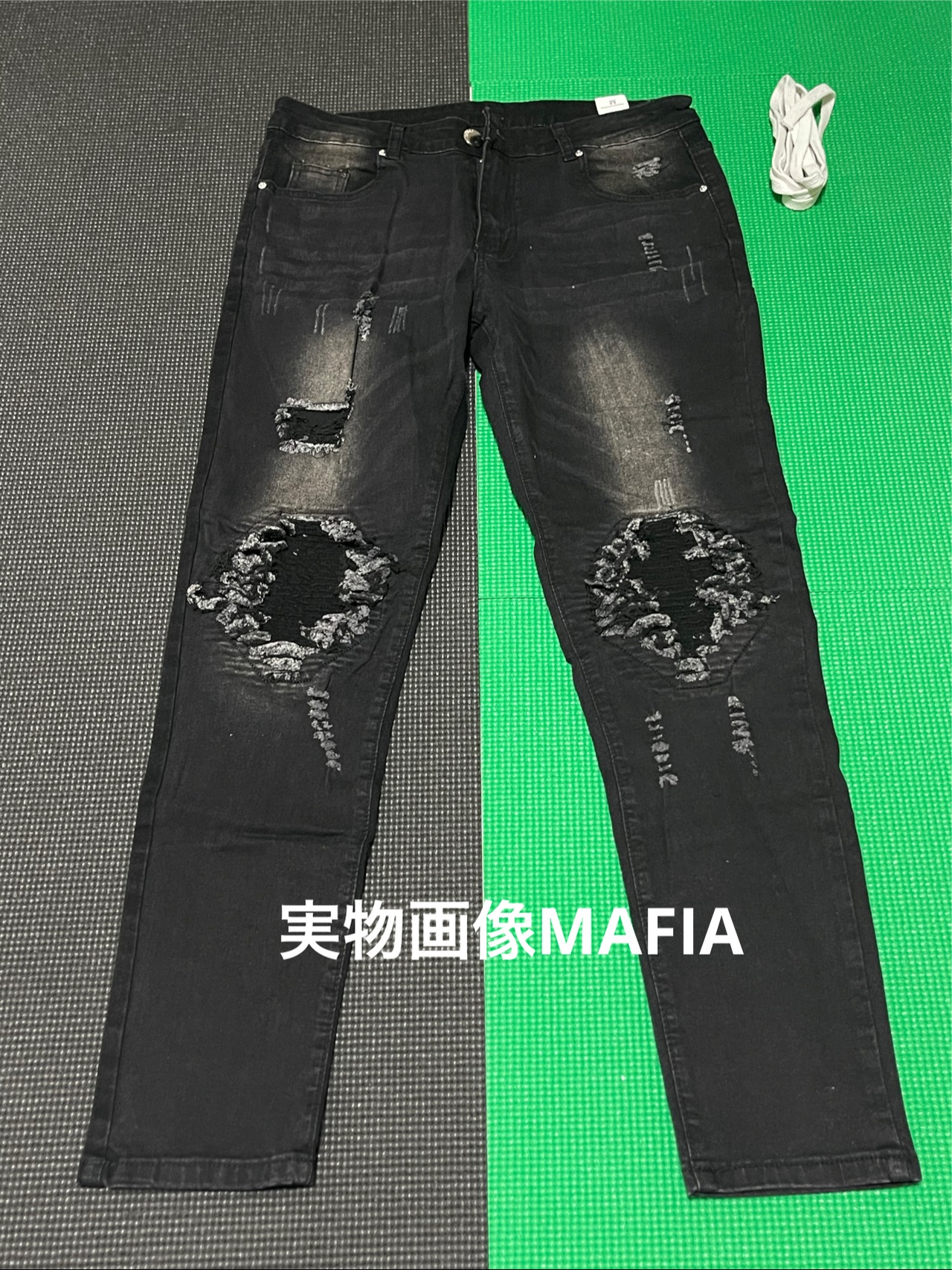 ストーンウォッシュ加工 ダメージ スキニー パンツ クラッシュデニム 腰パン UKドリルファッション ギャングスター ゲットーヒップホップ 海外ラッパー Black ストリート系
