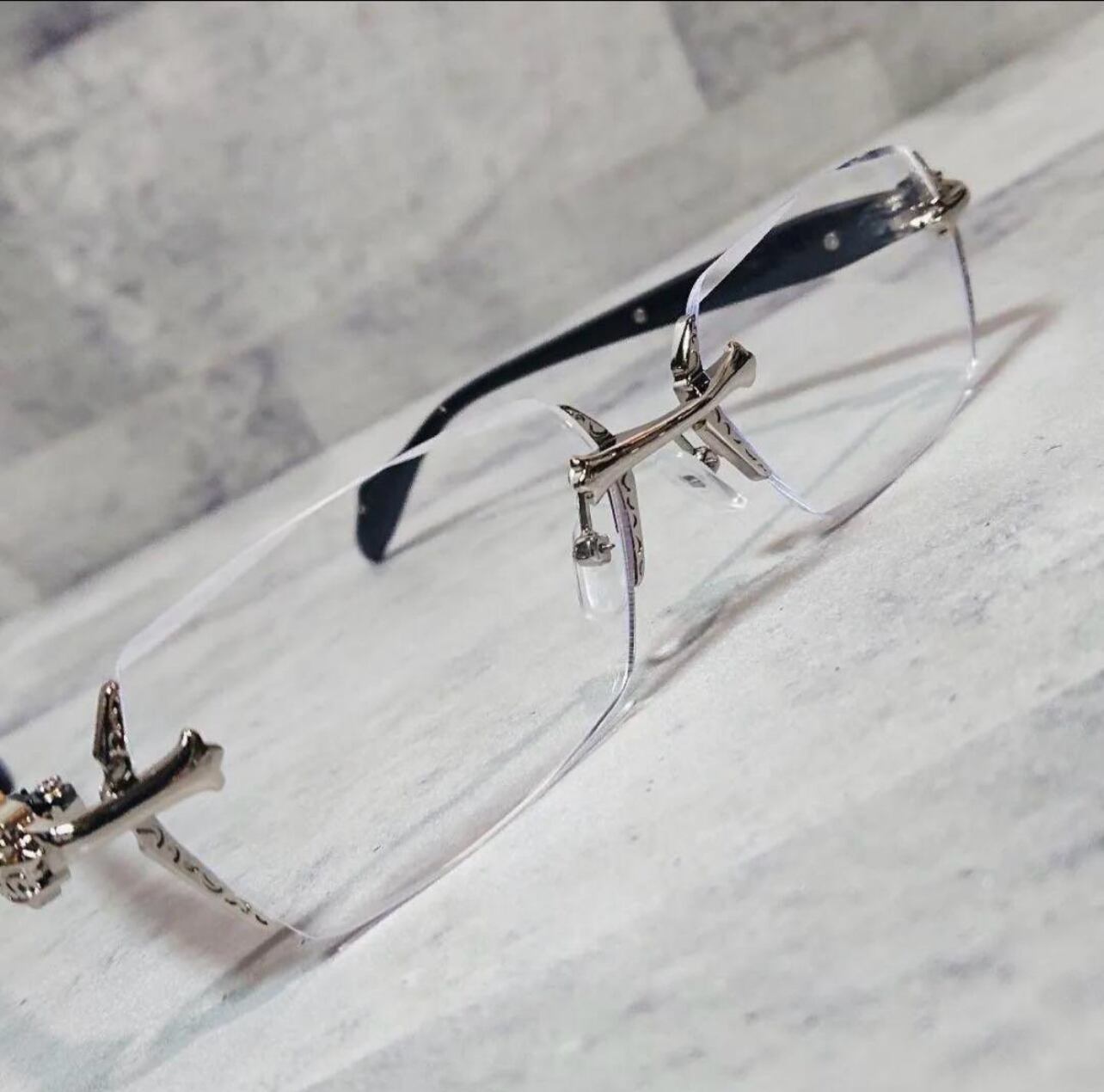 シルバー クリアレンズ 伊達メガネ 海外ラッパー B系 ミリオネア y2k ヒップホップ LV ギャング パンク ラグジュアリー