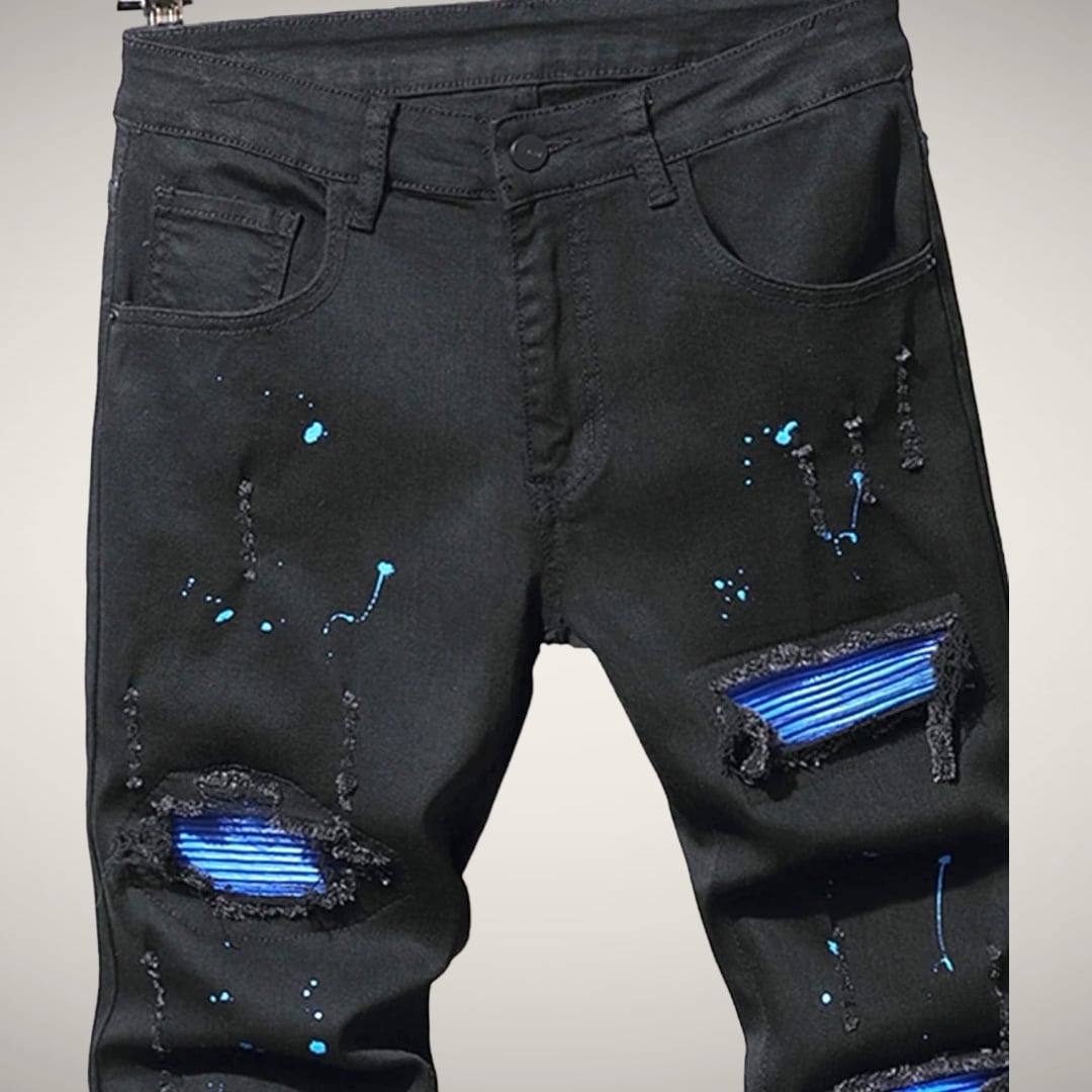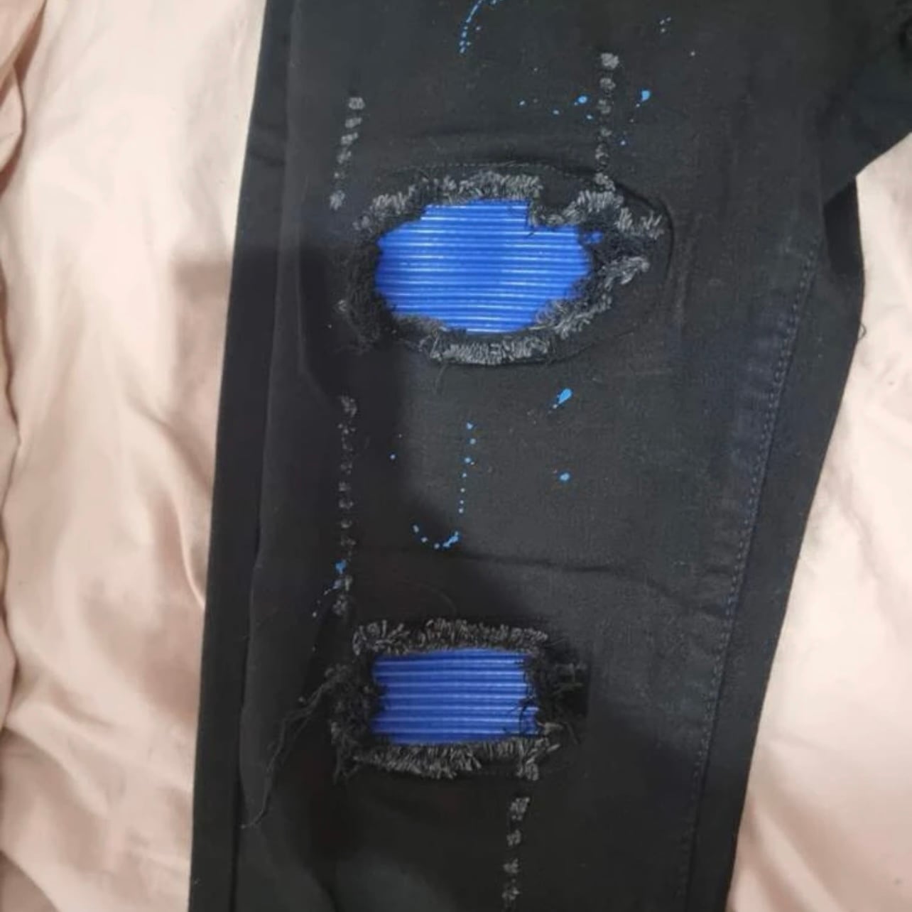 ダメージパンツ スキニー クラッシュジーンズ ブルー 海外 ラッパー UK US ドリル Black デニム ブラック
